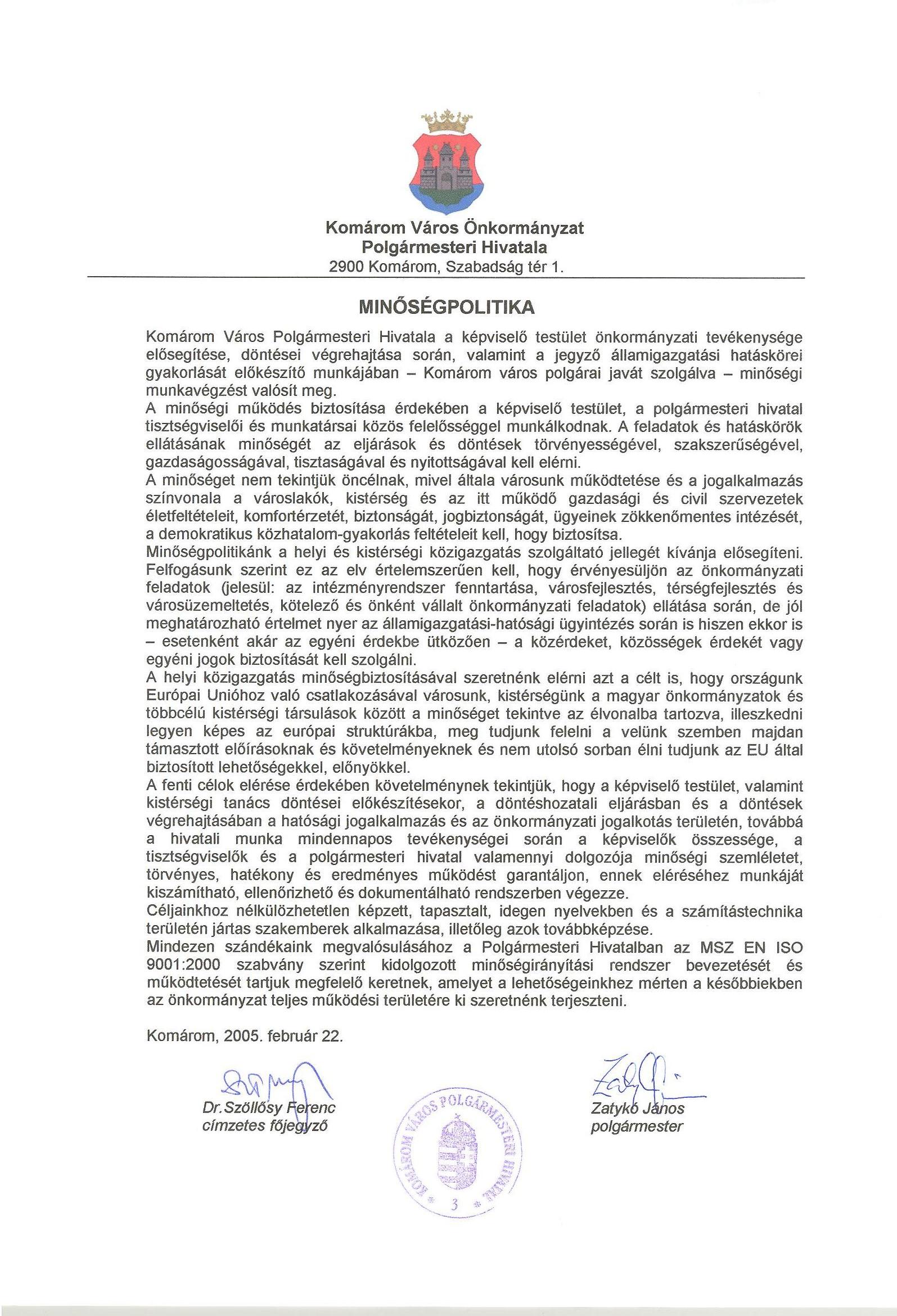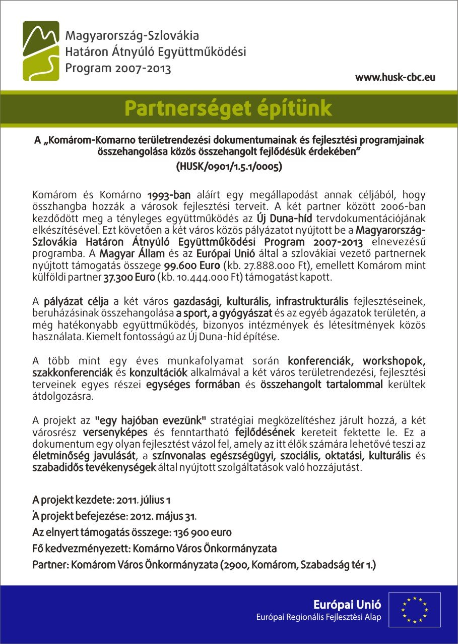 Kedvezményezett: Komárom Város Önkormányzata (2900 Komárom, Szabadság tér 1.; Telefon: 34/541-300; email cím: kompmh@t-online.hu)