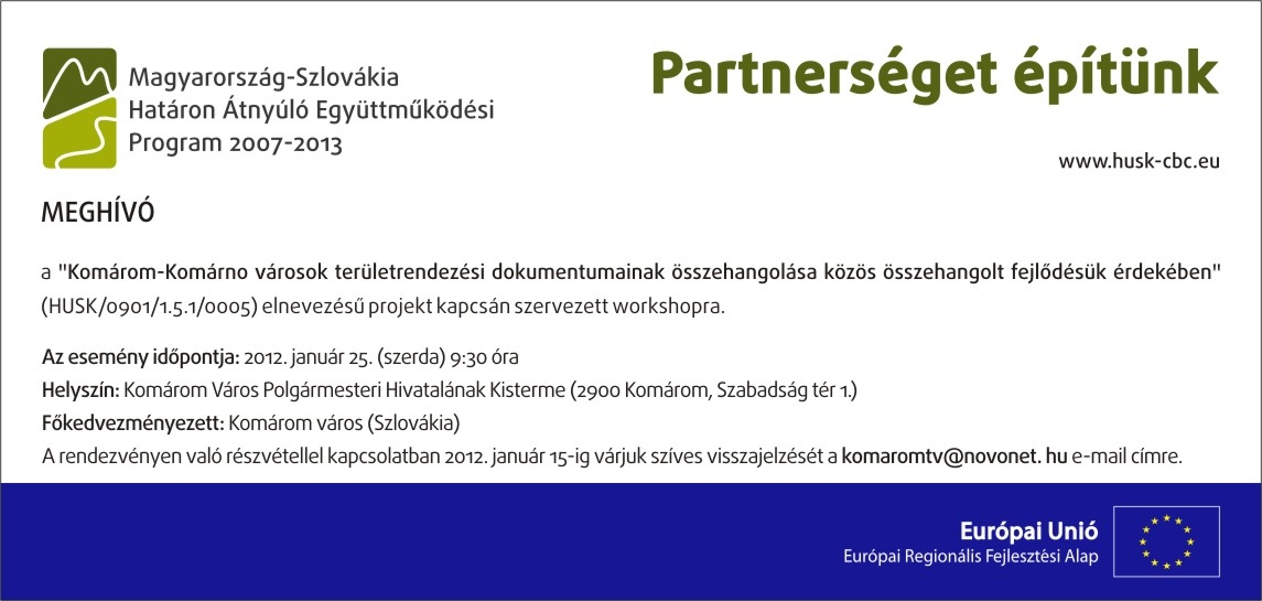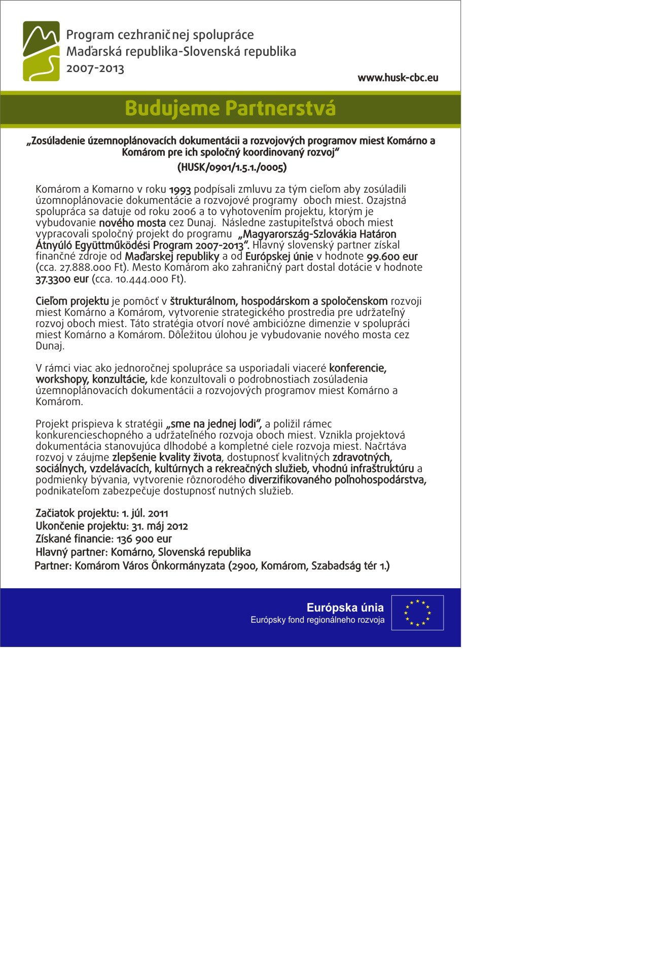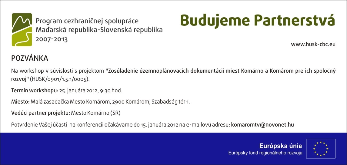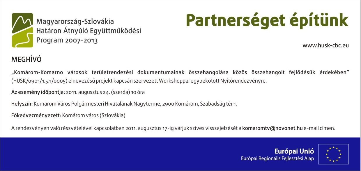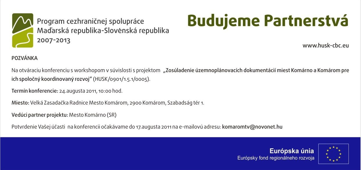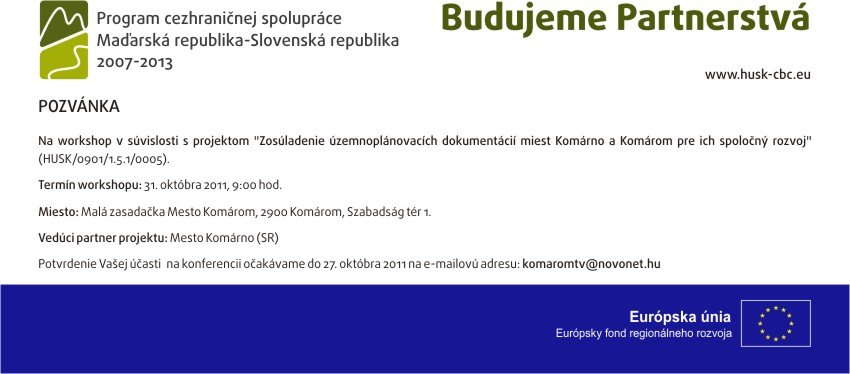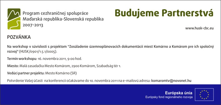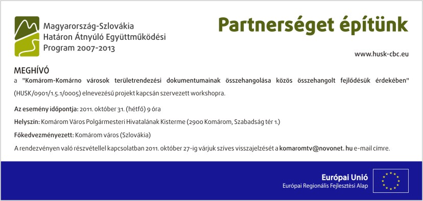 Téma: Komárom-Komarno városok területrendezési dokumentumainak összehangolása közös összehangolt fejlődésük érdekében - HUSK/0901/1.5.1/0005