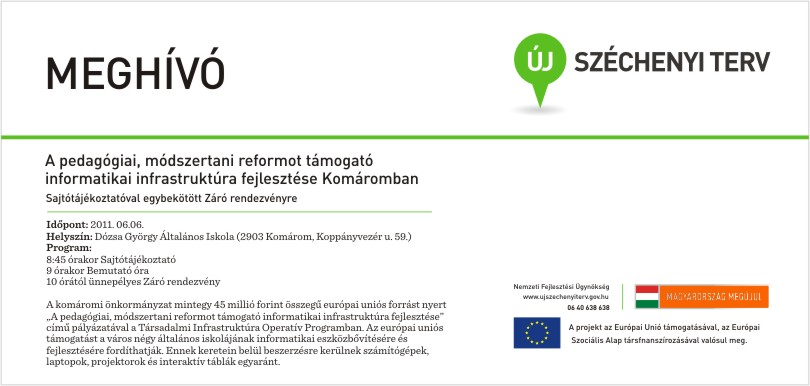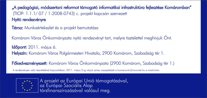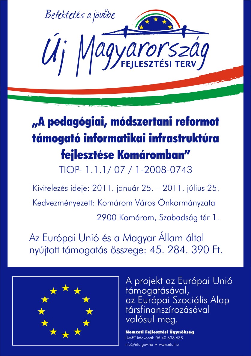 Téma: TIOP- 1.1.1/ 07 / 1-2008-0743 - "A pedagógiai, módszertani reformot támogató informatikai infrastruktúra fejlesztése Komáromban"