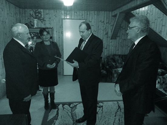 A családi fotók nézegetése, valamint a régi kedves emlékek felidézése közben János bácsi a városvezetésnek köszönetképpen elszavalta két versét, és elénekelte a nyugdíjas himnusz egy általa átírt változatát is.