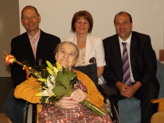 Bözsi nénit ezúttal nemcsak dr. Molnár Attila polgármester és a körzet képviselője Dombay Gábor köszöntette fel, hanem korábban nagyigmándi lévén Hajduné Farkas Erika a település polgármestere is tiszteletét tette nála.