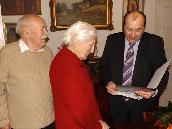 Dr. Molnár Attila polgármester és Turi Bálint alpolgármester miniszterelnöki köszöntőlevéllel és egy impozáns ajándékkosárral köszöntötték fel a szépkorú asszonyt.