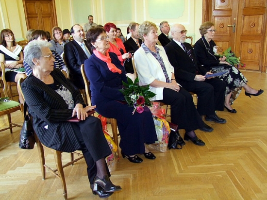 A találkozón köszöntötték azokat a nyugdíjas pedagógusokat is, akik 50, 60, illetve 65 évvel ezelőtt vették át diplomájukat. 1964-ben kezdett tanítani Balogh Lászlóné, Jenei Jánosné, Lantos István, Pőcze Lászlóné és dr. Proczeller Tamásné aranydiplomát vehettek át. 1954-től 1975-ig a Petőfi Sándor Általános Iskolában dolgozott Udvardi Lászlóné, aki tavaly kapta meg gyémánt diplomáját. Prohászka Marcell 1949-ben végezte el az egyetemet. Munkáját aktív korában több szakmai kitüntetéssel is elismerték, Komárom Város Pro Urbe-díjasa és díszpolgára lett. Vasdiplomáját az Eötvös Loránd Tudományegyetemen vehette át. Szintén vasdiplomát kapott Kissné Takács Mária is, ő azonban időközben más településre költözött. Neki két hete, költözése előtt, Turi Bálint alpolgármester nyújtotta át a vasdiplomát, valamint az önkormányzat ajándékát.
