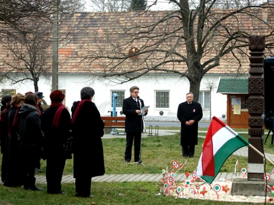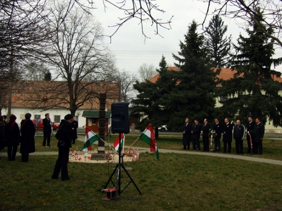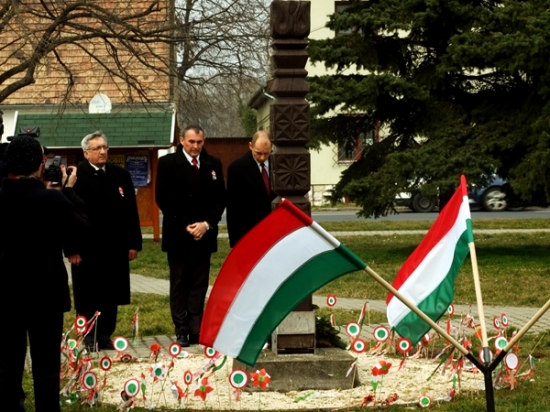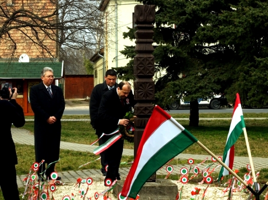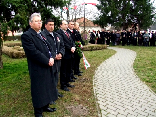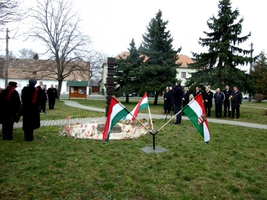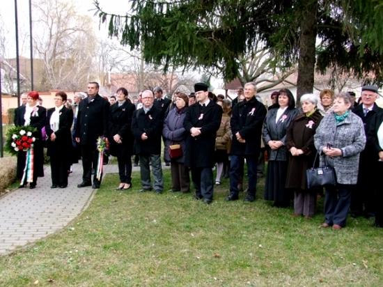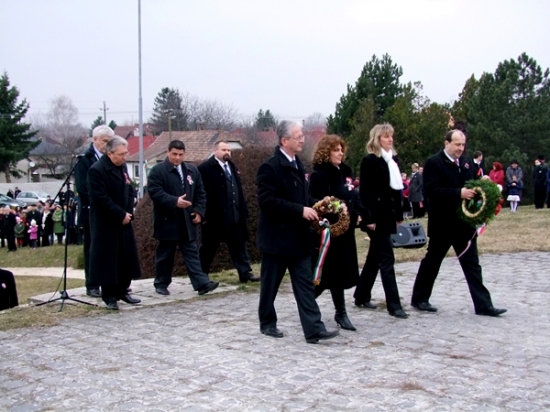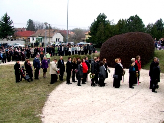 Az ünnepség végén az egybegyűltek megkoszorúzták a Hősök terén álló kopjafát.