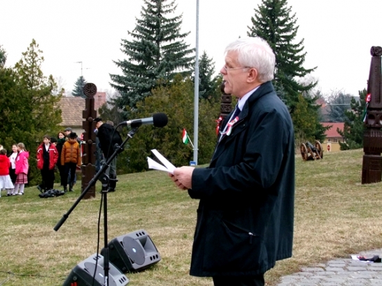 A megemlékezés a komáromi Kopjafás emlékparkban folytatódott, ahol beszédet mondott Koltay Gábor filmrendező, Magyarország érdemes művésze, városunk díszpolgára. - Széchenyit és Kossuthot szívesen állítja szembe egymással a közvélemény, pedig mindkettejükre egyszerre volt szüksége hazánknak, kiegészítették egymást. Nem azt keresték, ami szétválaszt, hanem azt, ami összeköt minket. Nem lehet elégszer elmondani, hogy a nemzet érett fővel, következetes fellépéssel, békés úton ért céljához. A szabadságharcot nem mi kezdtük, a császár küldte ránk bérenceit, 1848 őszétől saját hadseregét, majd pedig az orosz cár katonáit, ígéretét megszegve, jóhiszeműségünkkel visszaélve.