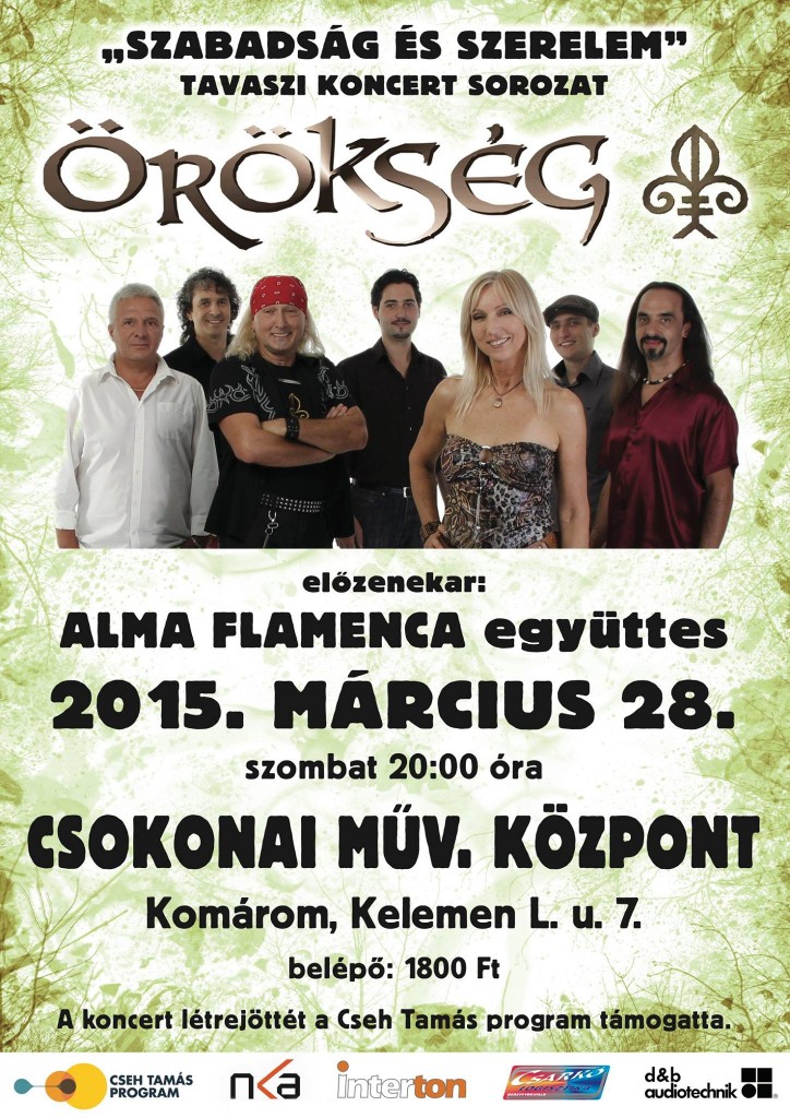 Örökség koncert a Csokonai Művelődési Központban! Előzenekar az Alma Flamenca együttes. 2015. március 28. szombat, 20. 00 óra.