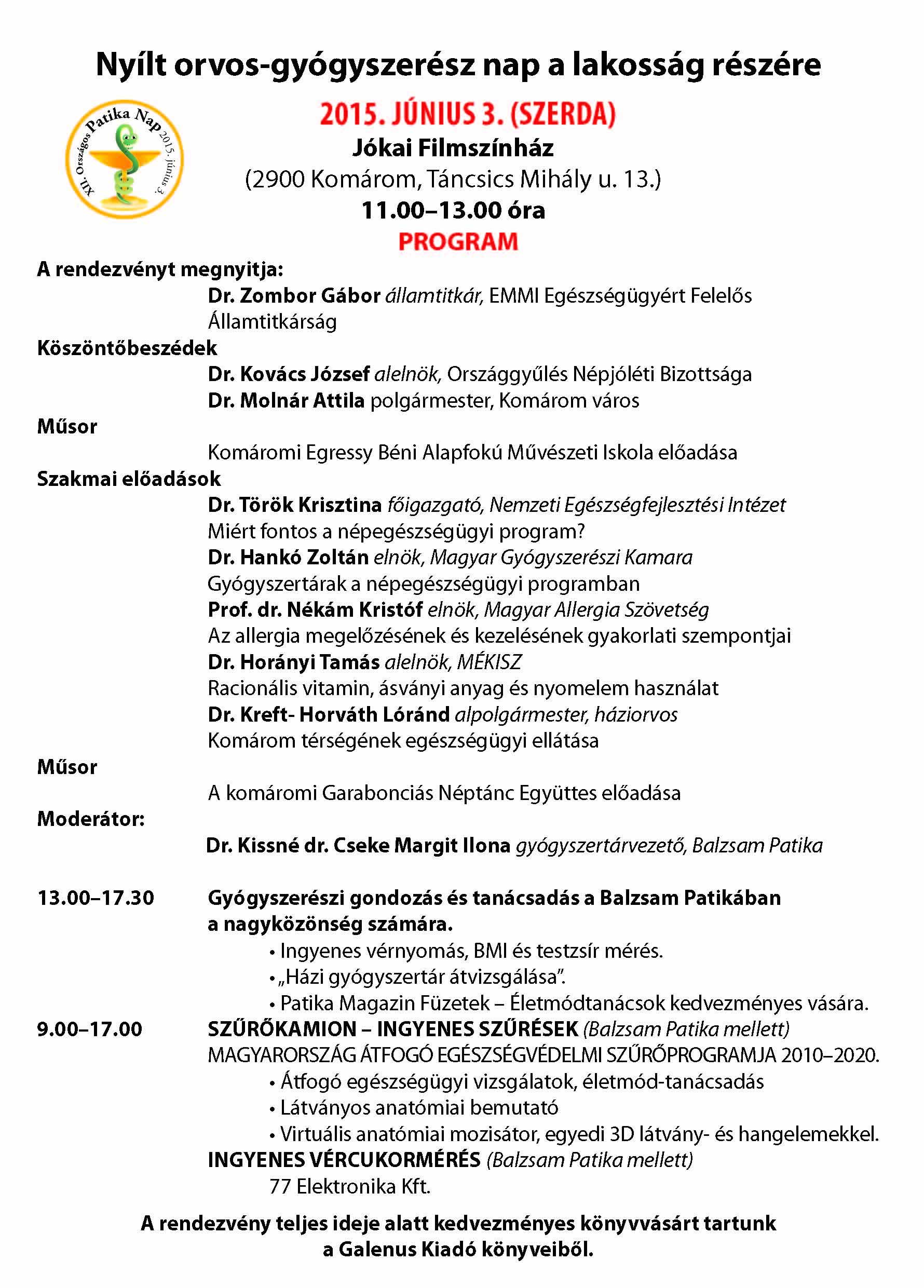 Országos patika nap Komáromban. Időpont: 2015. június 3. szerda, 11.00 óra. Helyszín: Jókai mozi.