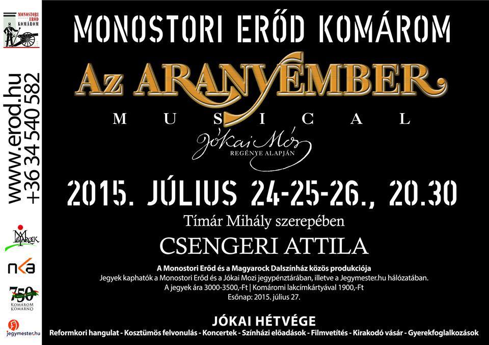 Esténként Timár Mihály és társai várják a színházszerető közönséget a Dunai bástya színpadára. Az Aranyember-bemutatónak külön pikantériája, hogy a színpad melletti múzeumban megtekinthető Timár Mihály bőgőshajójának a makettje, illetve, hogy az előadás helyszíne maga is megjelenik a műben. A Monostori Erőd és a Magyarock Dalszínház közös produkciójának főbb szerepeiben Csengeri Attila, Sándor Péter, Zöld Csaba, Nagy Anikó, Makrai Pál, Kuczmann Ágnes és Másik Lehel látható.