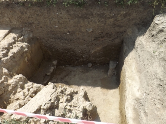 A födém alatt pincéből különböző tárolóedények, amforák, dörzstálak töredékei és a bennük tárolt gyümölcsök és növények, köztük datolya, alma, barack, körte és olíva magjai kerültek elő, de számos olívabogyóra és datolyára bukkantak megkövült, összeszáradt állapotban.