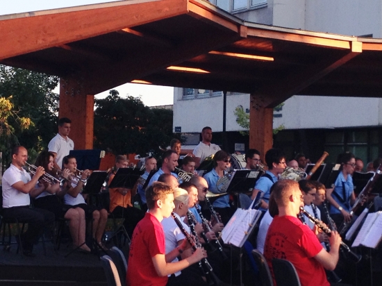 Komáromot a Pro Urbe-díjas Egressy Fúvószenekar képviselte Szabó Ferenc karnagy vezényletével. A több, mint egy órás koncertet Erkel Hunyadi László című operájának nyitánya indította, de hallható volt kuriózumként japán zeneszerző műve is az ismertebbek mellett,( Lehár, Gershwin, Ellington)