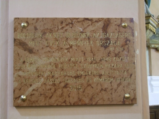 Több mint egy évtizede már, hogy a Kecskés László Társaság megemlékezik a felvidéki kitelepítésekről, mindezt 2010 óta az önkormányzattal közösen teszi. Három éve pedig dr. Molnár Attila polgármester, korábbi országgyűlési képviselő kezdeményezésére az Országgyűlés április 12-ét a kitelepítettek emléknapjává nyilvánította. Most a szőnyi Nagyboldogasszony templomban avatott táblát a Kecskés László Polgári Társulás a felvidékről kitelepítettek emlékére. Az eseményen jelen volt Czunyiné dr. Bertalan Judit köznevelésért felelős államtitkár, a történelmi egyházak képviselői, városunk vezetése és mindazok, akiket érintett az 1945-48-as kitelepítés.