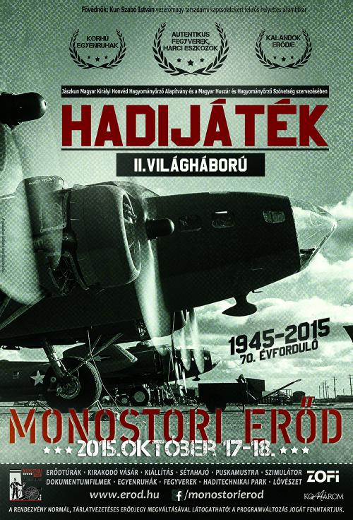 Katonai hagyományőrző bemutató a II. világháború befejezésének 70. évfordulójánA katonai hagyományőrzők a 1939–1945-ös háborús éveket idézik meg. A műsorban korabeli fegyvereket, aknavetőket láthat a közönség, valamint megismerkedhet a II. világháborús páncélos technikával is.Korabeli öltözetű szovjet harcossal, magyar, német és amerikai katonákkal találkozhatnak az érdeklődők, ezen kívül várhatóak tábori/hegyi ágyúk és aknavetők, valamint Hetzer, Szu 76, Kübelwagen, oldalkocsis motorok, ágyúk és még sok más hadieszköz a II. világháborúból.