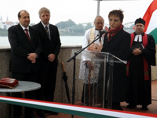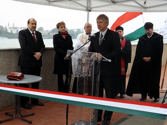 - Mindnyájan emlékszünk, hogy két évvel ezelőtt, június 8-án és 9-én 845 centiméteren tetőzött Komáromnál a Duna. A példaértékű összefogásnak, a szakemberek, és az önkéntesek munkájának köszönhetően a medrében tartottuk a Dunát, megvédtük Komáromot! A mai nap a köszöneté! Köszönöm Magyarország kormányának, hogy kiemelten kezelte ezt a beruházást! A megépült gátrendszer megvédi városunkat, és Almásfüzitő, illetve a környező települések lakóit. Emellett Komárom mást, többet is kapott, egy élhető Duna partot, mely a jövőben turisztikai célokat is szolgálhat - mondta az átadó alkalmával dr. Molnár Attila polgármester.