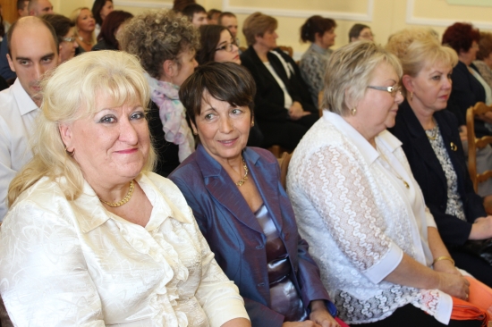 Az ünnepség folytatásaként először a pályakezdők tettek esküt. Idén hét fiatal kezdte meg munkáját városunk valamelyik oktatási-nevelési intézményében. Ugyanennyien vonultak nyugdíjba, számukra emléklapot nyújtott át dr. Molnár Attila polgármester, és Turi Bálint alpolgármester. Városunk vezetőitől vehették át arany, gyémánt vagy rubin diplomájukat azok, akik 50, 60 vagy 70 évvel ezelőtt kezdték meg a pályát.