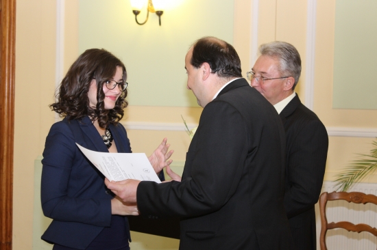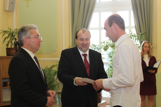 Az új pedagógusok – Buday Bettina, a Feszty Árpád Általános Iskola tanítója, Deák László, a Feszty Árpád Általános Iskola tanára, Horváth Anna Zsófia, a KEM Pedagógiai Szakszolgálat Komáromi Tagintézménye gyógypedagógusa, Sülei Csaba, a Kempelen Farkas Szakközépiskola tanára, Szabados Kitti, a Feszty Árpád Általános Iskola tanára, Szabó Lilla, a Feszty Árpád Általános Iskola tanítója és Vörös Eszter Szonja, a Komáromi Tóparti Óvoda óvónője – dr. Molnár Attila polgármester előtt tették le esküt majd átvették az ezt igazoló okmányt.