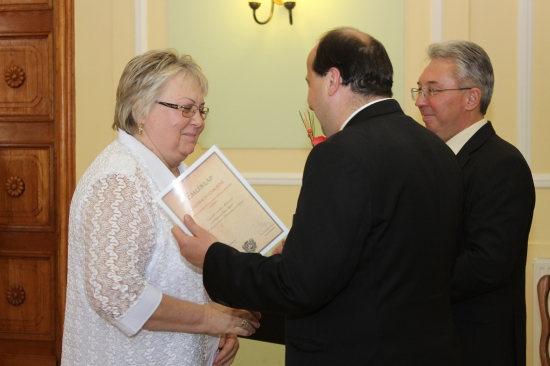 Arany diplomát kapott Böde Istvánné, a Bozsik József Általános Iskola nyugalmazott tanítója, Marder Györgyné, mindenki Hadnagy Márta nénije, az egykori Klapka György Általános Iskola nyugalmazott tanára, Mészáros Ferenc, a Feszty Árpád Általános Iskola nyugalmazott tanára, Molnár Józsefné, a Gesztenyés Óvoda nyugalmazott óvónője, óvodavezetője, Németh Józsefné, a Feszty Árpád Általános Iskola nyugalmazott tanára, iskolaigazgatója, Samu Zsoltné, a Napsugár Óvoda nyugalmazott óvónője, óvodavezetője, Turiné Csontos Erzsébet, a Kistáltos Óvoda nyugalmazott óvónője, óvodavezetője és Vajda Lászlóné, a Bozsik József Általános Iskola nyugalmazott tanítója.