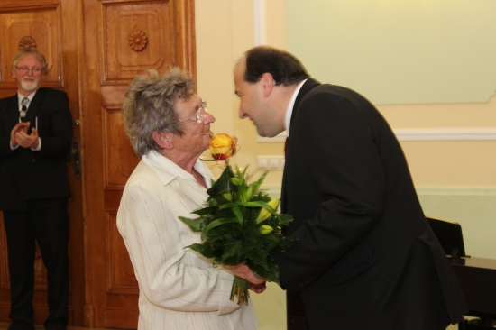 Az idei évben a legnagyobb tisztelet Kálmán Jánosnét, a Petőfi Sándor Általános Iskola nyugalmazott tanítónőjét illette, aki 70 éve kapott diplomát a Győri Állami Tanítóképzőben. Pályáját a jászberényi általános iskolában kezdete, majd 1958-tól a Petőfi Sándor Általános Iskola tanítója lett, ahol felsős napközis nevelőként dolgozott, nyugdíjba vonulásáig. Az ünnepségen rubin diplomával tüntették ki.
