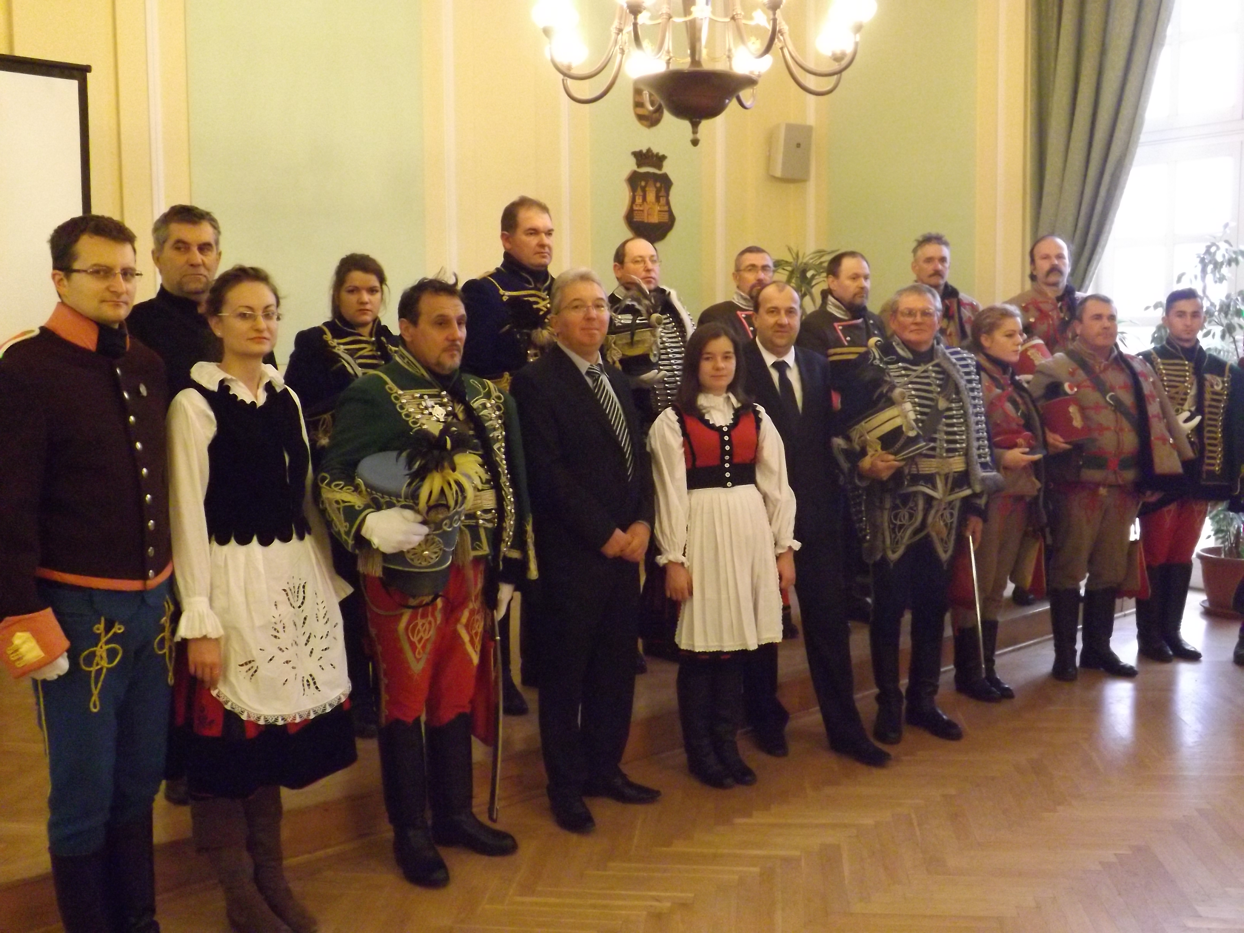 A városháza dísztermében dr. Molnár Attila polgármester, és Turi Bálint alpolgármester köszöntötte a 20 fős delegációt. Megtudhattuk, hogy az austerlitzi csata a székely határőrség, a két székely gyalog-, és az egy huszárezred egyetlen ütközete volt, ahol jelentős vereséget szenvedtek Napóleon csapataitól. Több száz székely halt hősi halált.