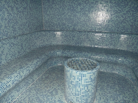 Ahogy már a rönkszaunát övező kertnél is, úgy a most átadott belső térnél is a természetes anyagok dominálnak és visszaköszön az ókori római hangulat is.