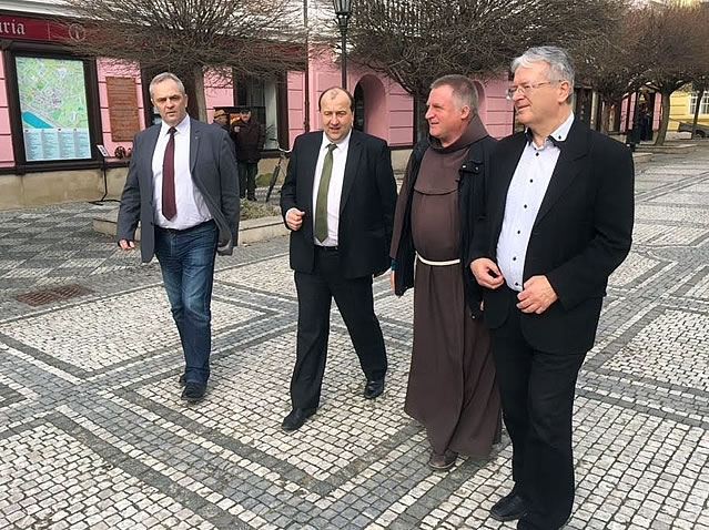 A Helios Spes Polgári Társulás, a Szent Ferenc Alapítvány felvidéki önkéntesei meghívásának eleget tevő Csaba testvér a Városházán Észak-Komárom polgármesterével, Stubendek Lászlóval és Knirs Imre alpolgármesterrel, valamint Molnár Attilával, Dél-Komárom polgármesterével is elbeszélgetett, majd emlékbejegyzést tett a város krónikájába.