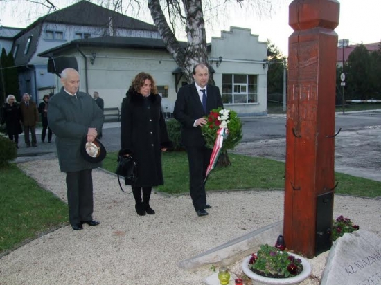 Az esemény előtt a város vezetése, dr. Molnár Attila polgármester, dr. Kreft-Horváth Loránd és Turi Bálint alpolgármesterek, Molnárné dr. Taár Izabella a járási hivatal vezetője, Hamrák Zsófia, Menczer Erzsébet, dr. Pákh Tibor és Szabó László megkoszorúzták a Lengyár területén álló ’56-os emlékművet, majd a nemrégiben, a Monostori erődben elhelyezett, a Gulágra hurcoltak emlékére állított táblát.
