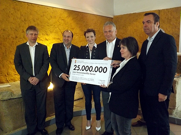 Az összeget jelképesen L. Simon László a kulturális örökségvédelemért és a kiemelt kulturális beruházásokért felelős államtitkár adta át a Klapka György Múzeumban. Az eseményen részt vett Czunyiné dr. Bertalan Judit térségünk országgyűlési képviselője, dr. Kancz Csaba megyei kormánymegbízott, dr. Borhy László régészprofesszor, dr. Visy Zsolt régészprofesszor, Számadó Emese a Klapka György Múzeum igazgatónője, valamint dr. Molnár Attila polgármester.