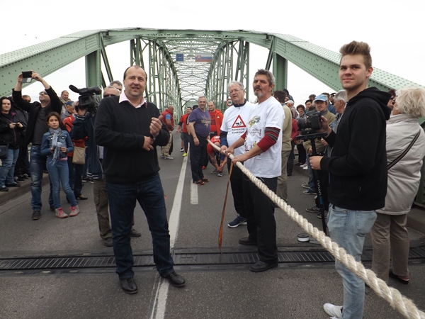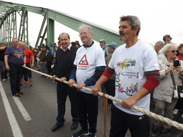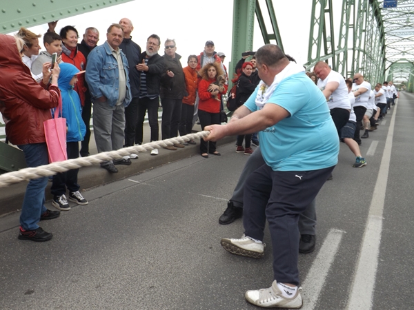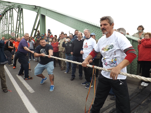 Szintén ezen a napon két fontos sporteseményre is sor került. Elsőként a déli és az északi erős emberek húzták a kötelet az Erzsébet hídon. Az első jó néhány évben mi bizonyultunk erősebbnek, de az elmúlt két esztendőben az északiak remekeltek. Ezúttal ismét nekik állt a zászló. Ezen a versenyen azonban mindenképpen Komáromé a dicsőség.