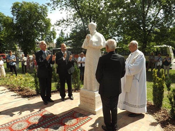 Az ünnepi ceremónián közreműködött Oláh Kálmán, a Kultsár István Szakközépiskola tanára, valamint Hegedűs Béla és kamarazenekara. Kligl Sándor alkotását Soltész Miklós államtitkár, dr. Molnár Attila polgármester, dr. Pákh Tibor és Pados József plébános leplezték le. Az alkotást Pápai József győri megyés püspök áldotta meg.