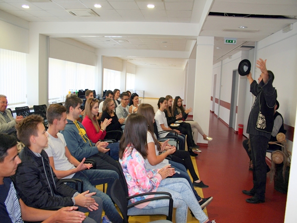 Gál Tamás az alkotást ízes beszéddel, kiváló improvizációs készséggel és interaktív formában közvetítette a fiataloknak.