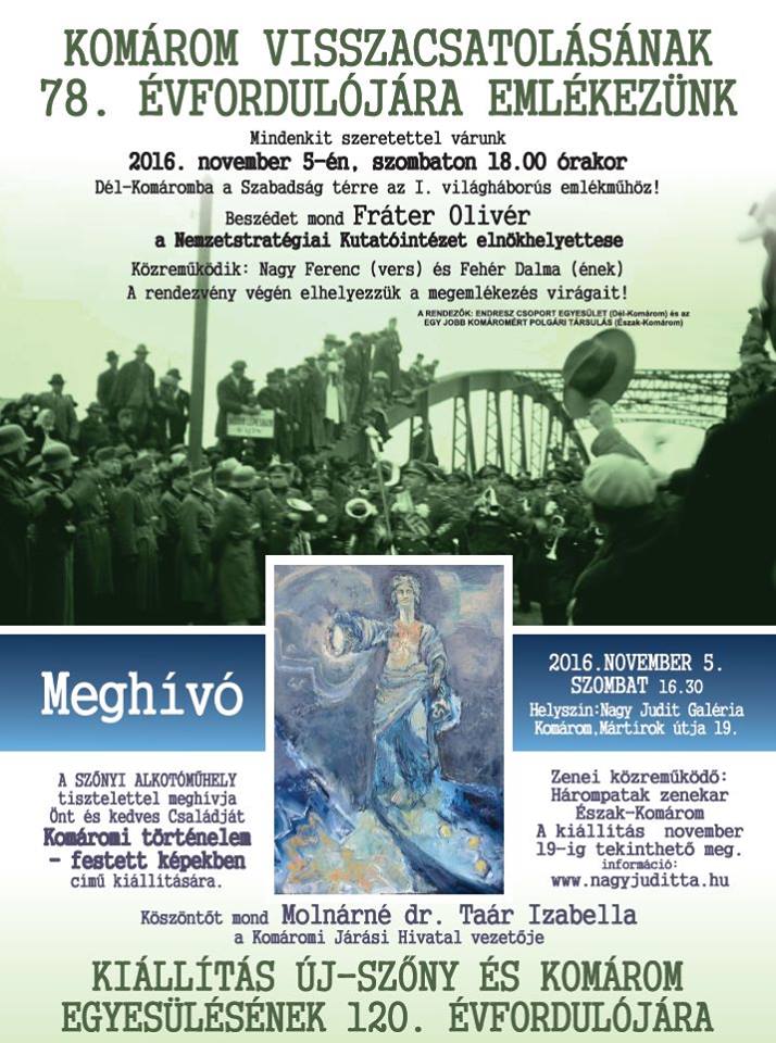 Kiállítás a Nagy Judit Galériában, ünnepi megemlékezés a Szabadság téren, november 5-én, szombaton 16.30-kor illetve 18.00 órakor.
