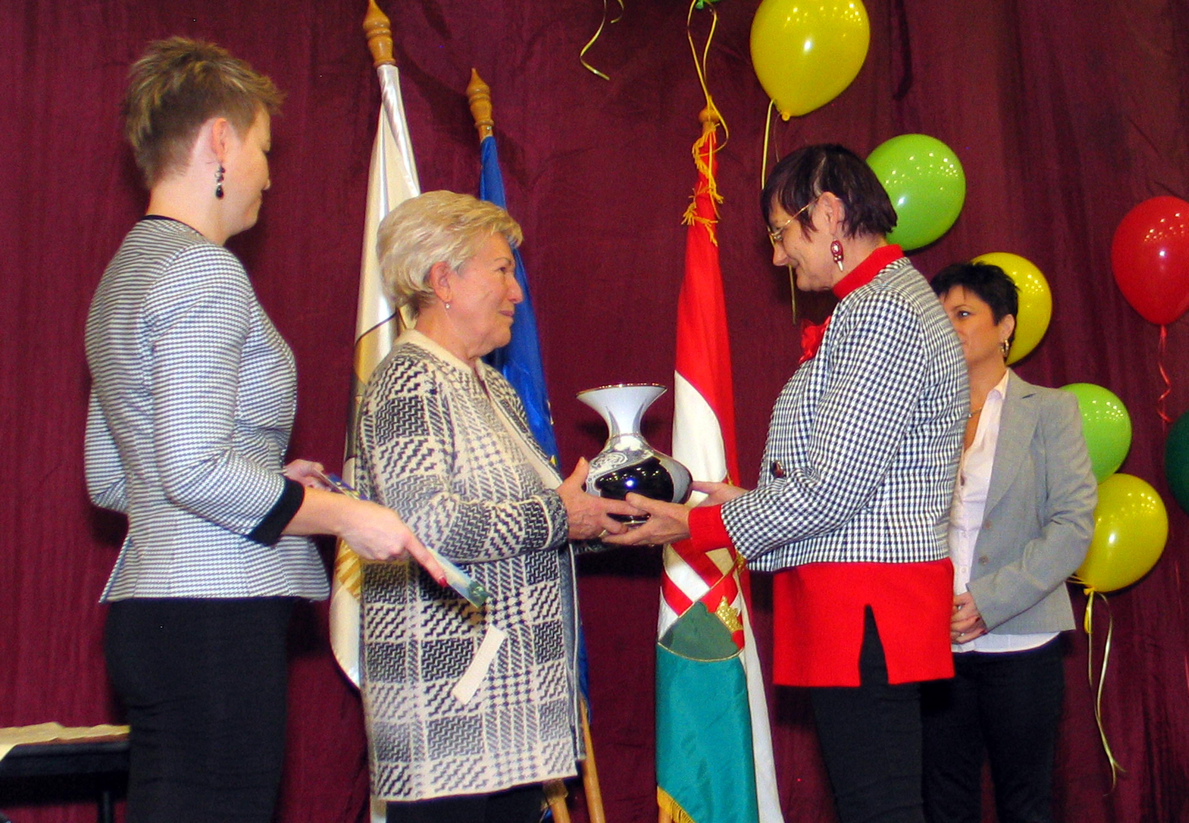 A legjobb kulturális műsorért a Bárdos László Gimnázium kapott elismerést Hajasné dr. Hertelendi Valériától, a KEM KH Foglalkoztatási Főosztályának vezetőjétől.
