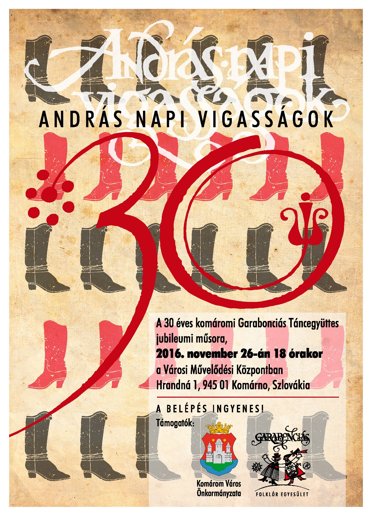 Hagyományos András napi vigasságok című műsorát, november 26-án 18 órakor tarja az idén 30 éves komáromi Garabonciás Néptáncegyüttes az észak-komáromi Városi Művelődési Központban.