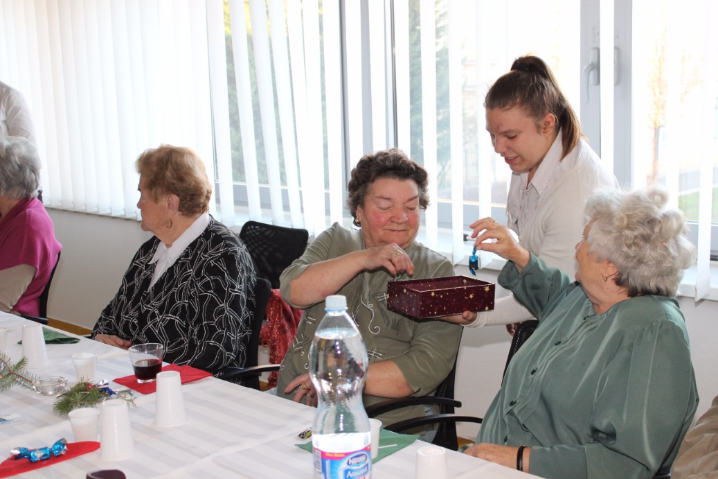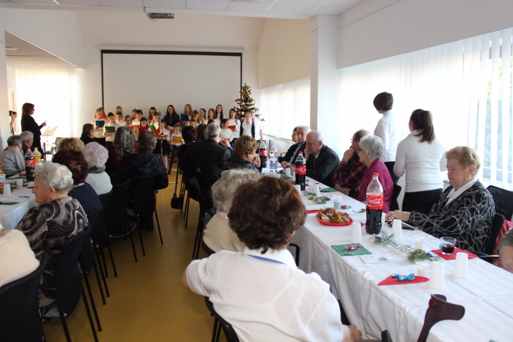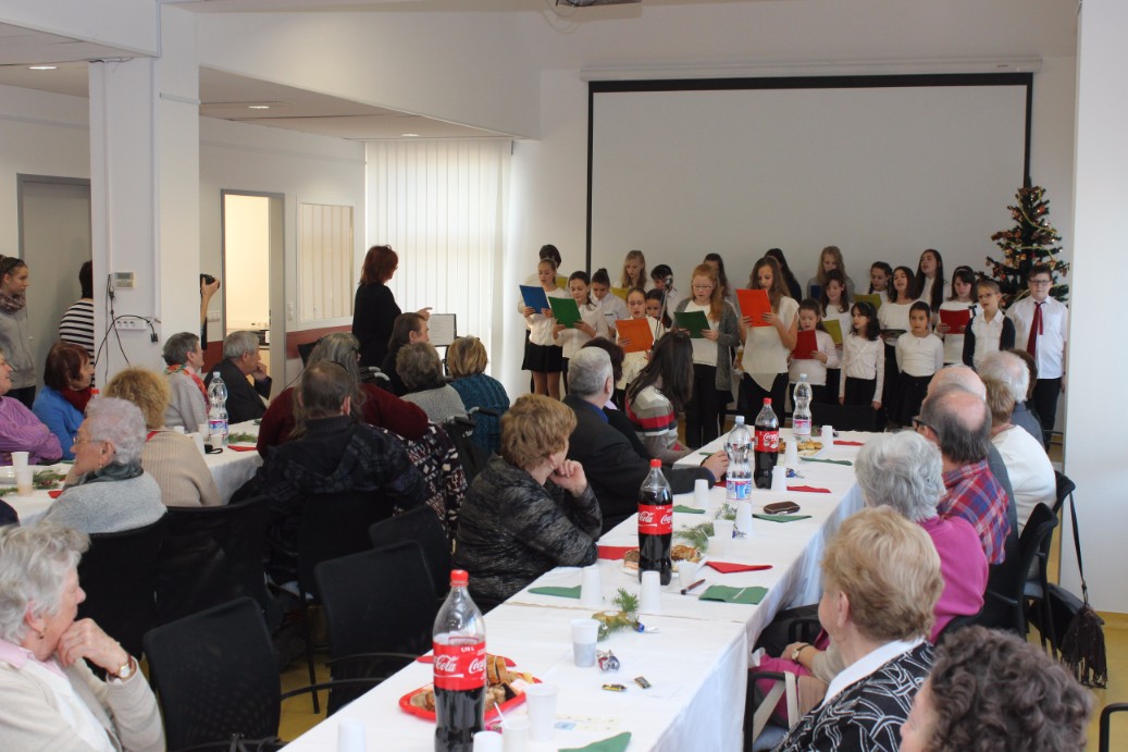 A karácsonyi ünnepséget mindig december első szombatján tartják. Céljuk, hogy felvidítsák a sorstársakat és együtt ünnepeljenek. A programban fellépett Oláh Kálmán, az Alapy Gáspár Szakközépiskola tanára, aki verset szavalt, akárcsak Tonomár István, a Jókai mozi nyugalmazott igazgatója. A Szent Imre Római Katolikus Általános Iskola kórusa pedig megható karácsonyi összeállítással örvendeztette meg az egybegyűlteket.