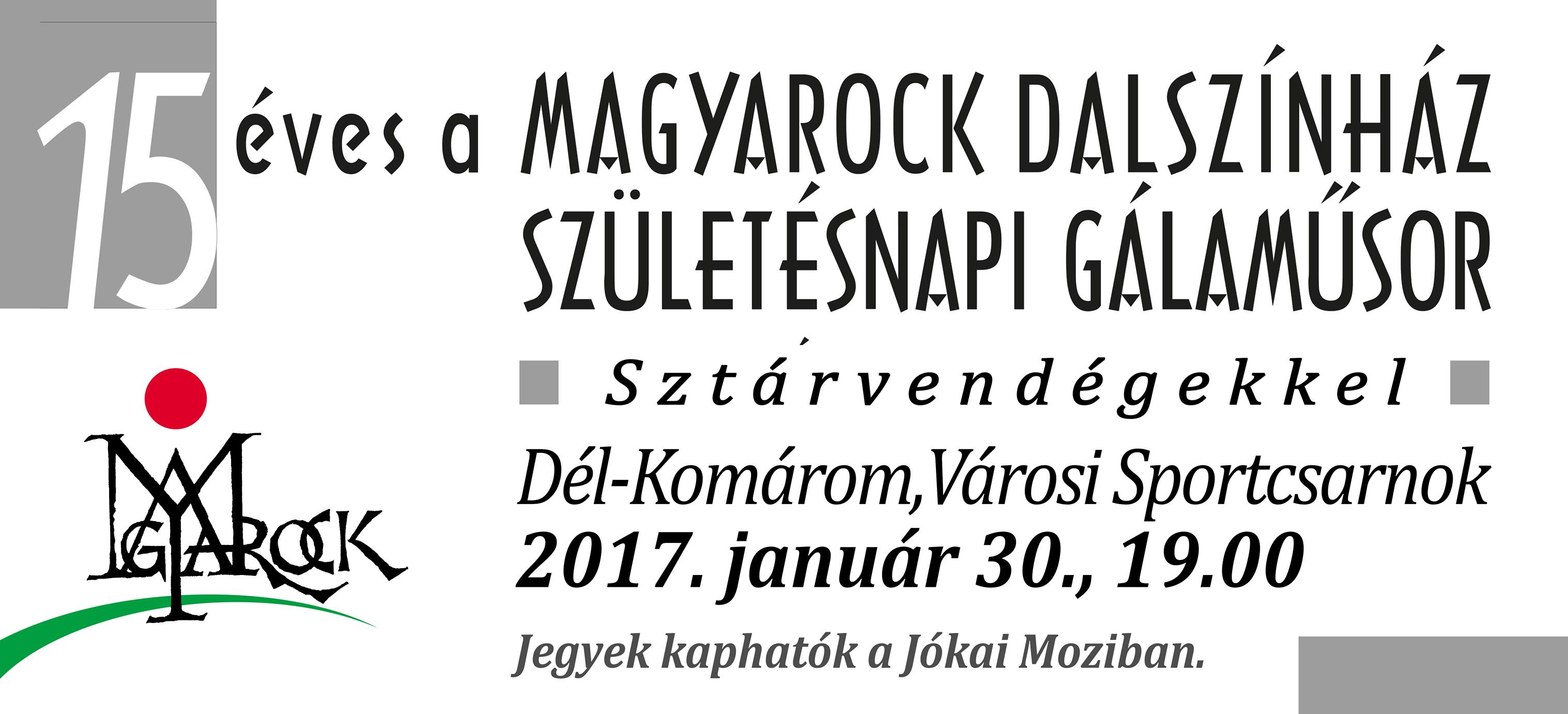 15 éves a Magyarock Dalszínház - születésnapi gálaműsor a Városi Sportcsarnokban 2017. január 30-án, 19.00 órától.