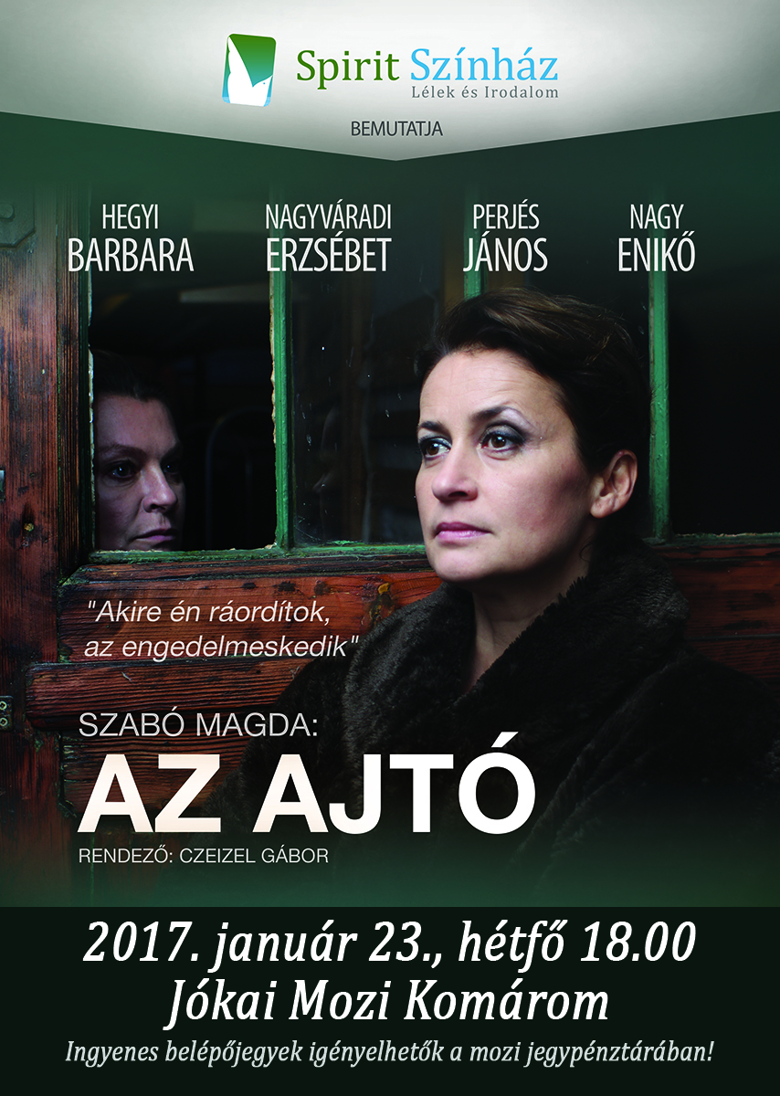 A magyar kultúra napja alkalmából január 23-án, 18.00 órától, Szabó Magda Az ajtó című darabját mutatja be a Spirit Színház a Jókai moziban. Ingyenes belépőjegyek a mozi pénztárában igényelhetők!