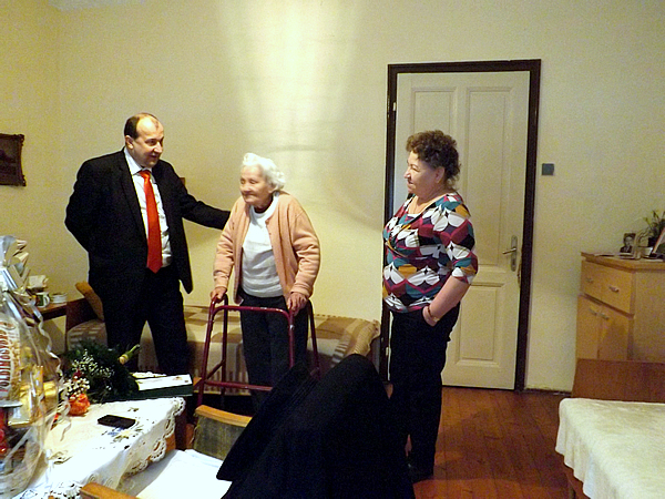 Jolika néni ajándékkosarat és miniszterelnöki köszöntő-oklevelet vehetett át.