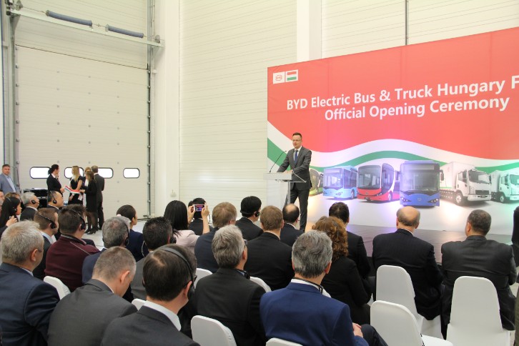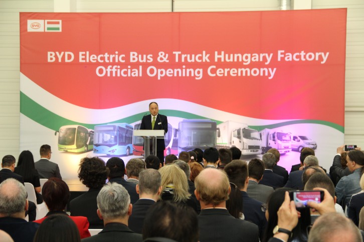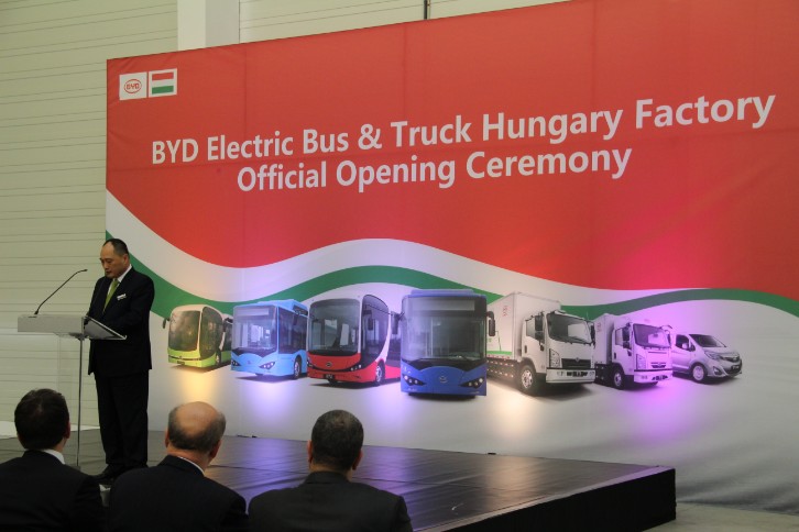 A kínai BYD április 4-én a komáromi ipari parkban megnyitotta első európai termelő üzemét. Az elektromos buszokat készítő üzemben évente négyszáz jármű előállítását tervezik.