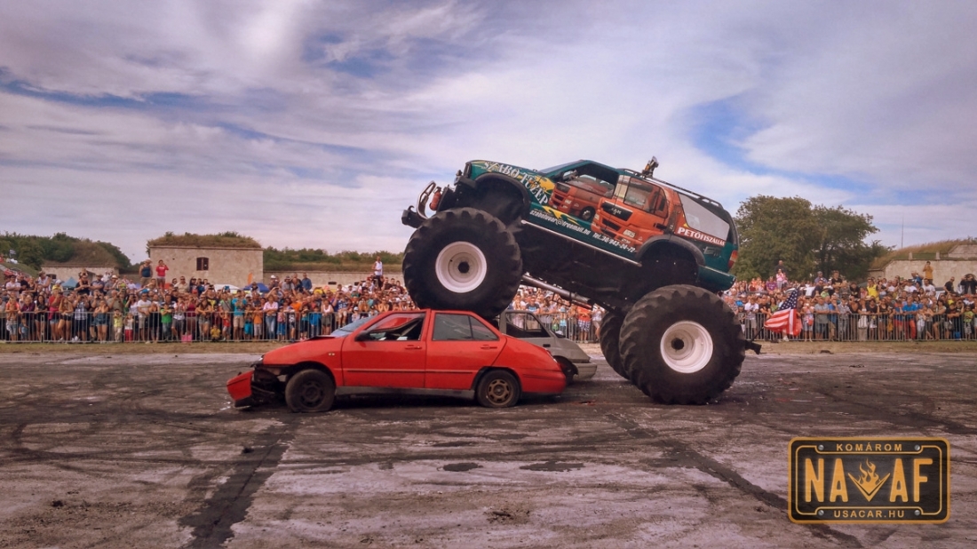 A betonpályához érve láttunk szinte repülő, táncoló Low Ridereket, füstöt okádó, aszfaltszaggató autókat, végül két óriási szörnyeteg érkezett, Big Foot és Kék Mammut, akik miszlikre taposták az erre a célra beáldozott roncsautókat. A csikorgó és hangosan eldurranó gumik is nagy ovációt váltottak ki, hát még az összeroppanó kasznik és szétrobbanó szélvédők.