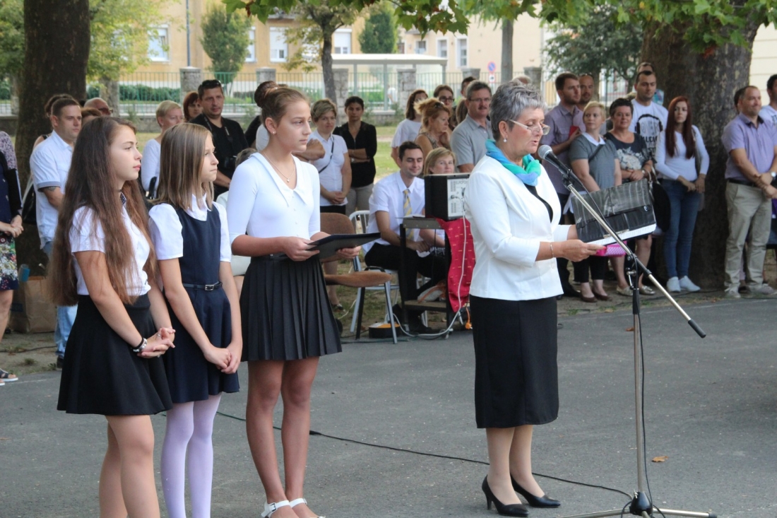 Jenei Tamás, a Hartmann Magyarország Kft. képviselője az átadón elmondta, vállalatuk hagyományosan környékbeli óvodákat és iskolákat támogat, hogy a dolgozók gyermekei még jobban érezzék magunkat az intézményekben. Molnár Csabáné, az iskola igazgatója a tanévnyitó beszédében pedig kifejtette, hogy az idei tanévben 292 kisdiák, 167 alsós és 125 felső tagozatos tanuló kezdi meg a 2017/2018-as tanévet. Az új játszóteret így diákok százai élvezhetik majd. Ezt követően köszönetet mondott a cégek vezetőinek és munkatársainak, valamint mindazoknak, akik a játszótér munkálataiban, tervezésében, szervezésében és kivitelezésében részt vettek.