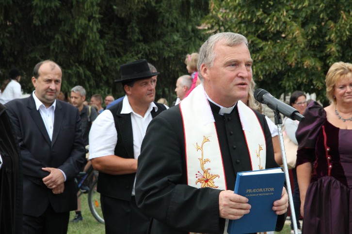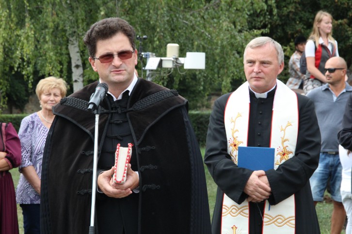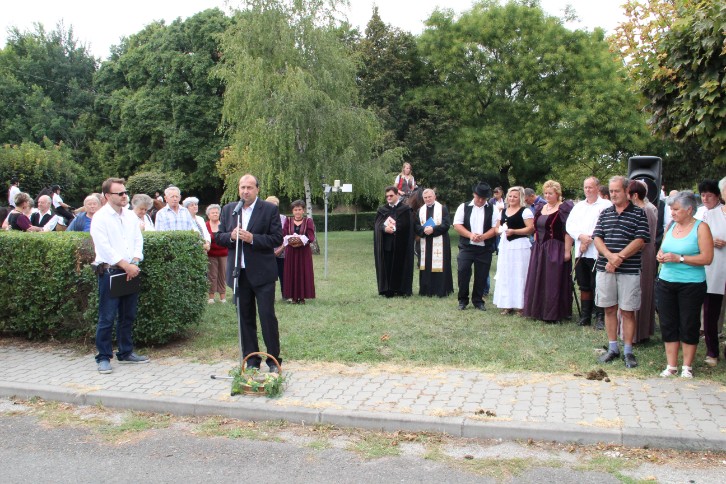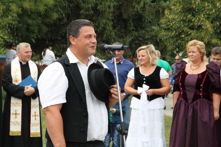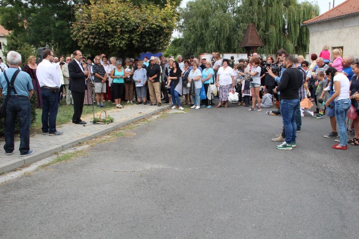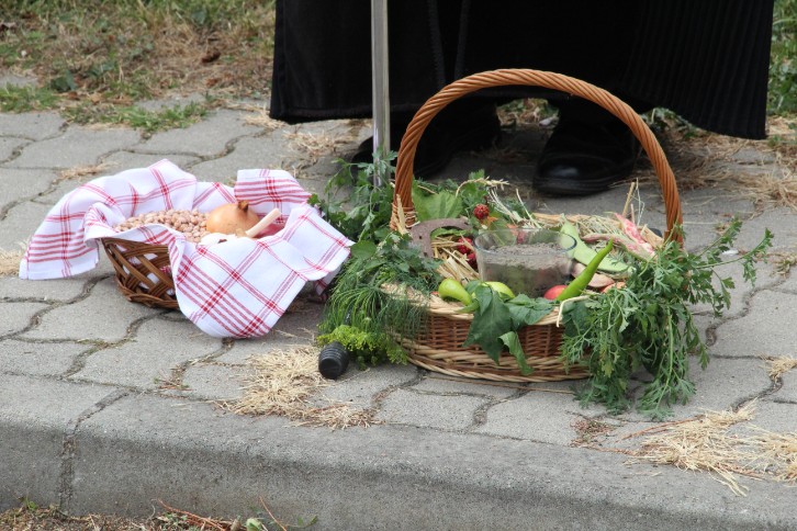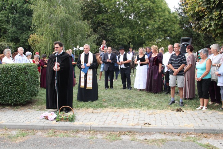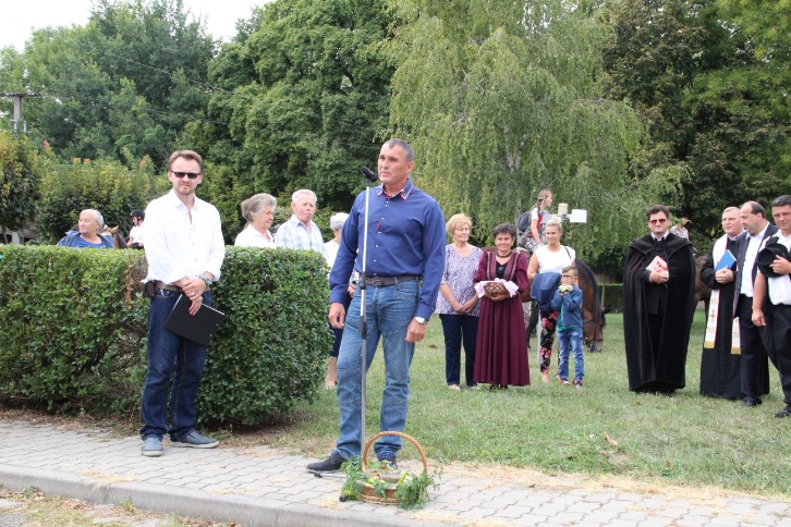 A felvonulás előtt első alkalommal terményáldásra is sor került Nagy Attila Ákos református lelkész és Milus Ferenc plébános közreműködésével.