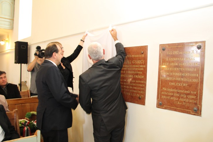 Dr. Somogyi Alfréd, a pozsonyi református egyházmegye esperese hirdetett igét azon a megemlékezésen, melyre szeptember 15-én került sor a szőnyi református templomban. Az eseményt a Kecskés László Polgári Társulás szervezte, emlékezve ezzel a reformáció 500. évfordulójára, valamint az 1947-48-as kitelepítésekre. Mindkettő tiszteletére emléktáblát avattak, az alkotásokat Varga László készítette. A márványtáblákat Balog Zoltán, az Emberi Erőforrások minisztere, Czunyiné dr. Bertalan Judit kormánybiztos, országgyűlési képviselő és dr. Molnár Attila polgármester leplezte le.