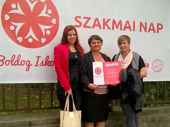 Városunkban először a Szivárvány Óvoda nyerte el a „Boldog óvoda” címet. A kitüntetést a múlt héten vehette át az intézmény vezetője, Pintér Jánosné és a pályázatot kidolgozó két óvónő, Hajmási Kitti és Kolozsvári Rita.
