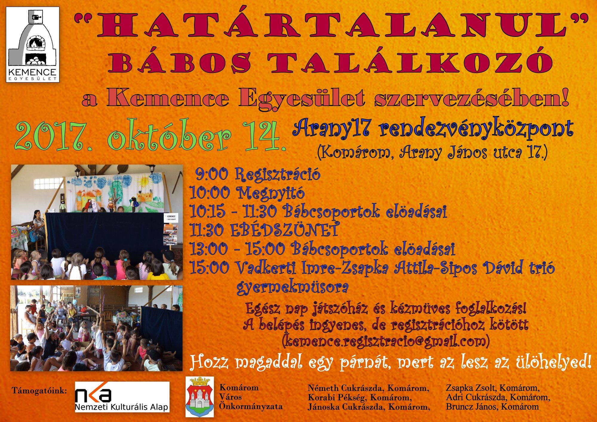 Október 14-én, szombaton délelőtt 10 órától egész nap várja a kicsiket, nagyobbakat és a gyermeklelkű felnőtteket a „Határtalanul nemzetközi bábos találkozó” az Arany 17. Rendezvényközpontban.