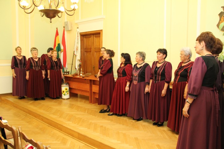 Ahogy arról korábban már beszámoltunk az idei megyei Príma Gálán Príma Különdíjban részesült a szőnyi Duna Népdalkör. A hagyományőrző kórust ezúttal dr. Molnár Attila polgármester, valamint dr. Kreft-Horváth Loránd, Czita János és Turi Bálint alpolgármesterek, illetve Takács József önkormányzati képviselő fogadta a Városháza dísztermében.