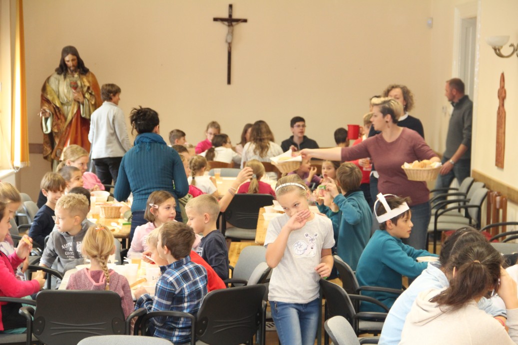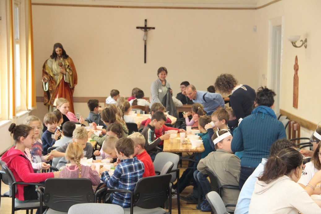 A délelőtt folyamán tematikus programokon vett részt a több mint félszáz gyerek. A Szent István királyhoz kapcsolódó foglalkozásokon lehetett országalmát, koronát és kardot készíteni, kifestőzni, agyagozni. Műsort adott a Bábuci Bábszínház. A napot gitáros közös éneklés nyitotta és zárta. A gyerekek 14 órától szentmisén vettek részt a kistemplomban. A következő KESU november 25-én lesz, szintén a Szent Ignác Közösségi Házban.