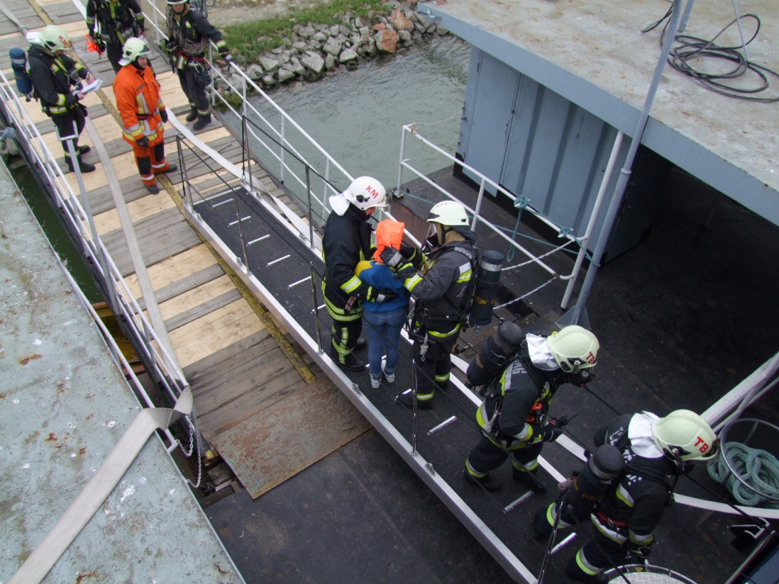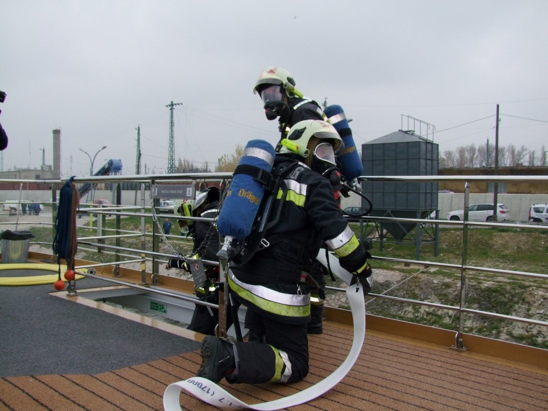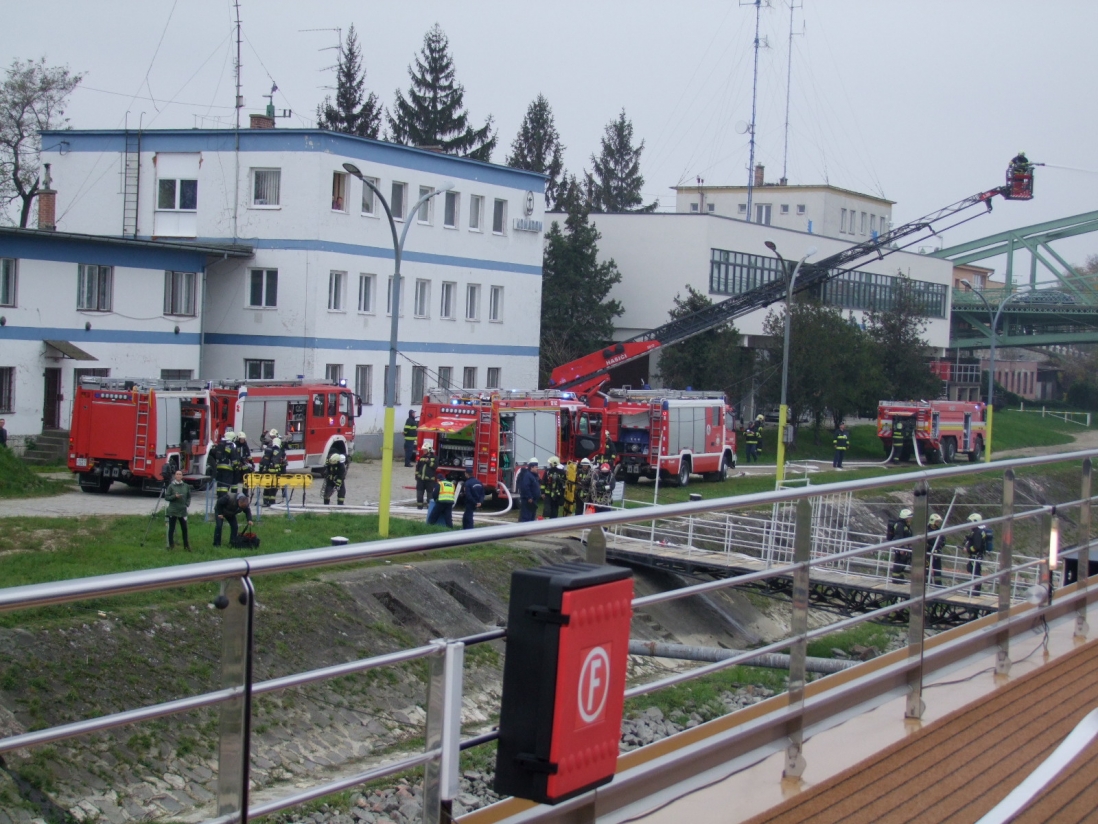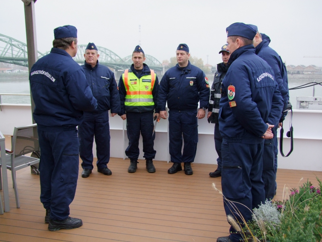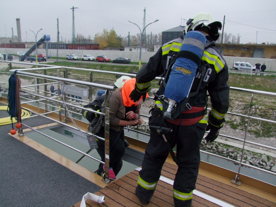 Több mint 80 fő részvételével került sor arra a nemzetközi mentési gyakorlatra, melynek forgatókönyve szerint egy szálloda hajózási társaságának járatán tűz ütött ki. A tűzoltás mellett a hajó utasait kellett evakuálni, illetve szennyeződés került a Dunába is.