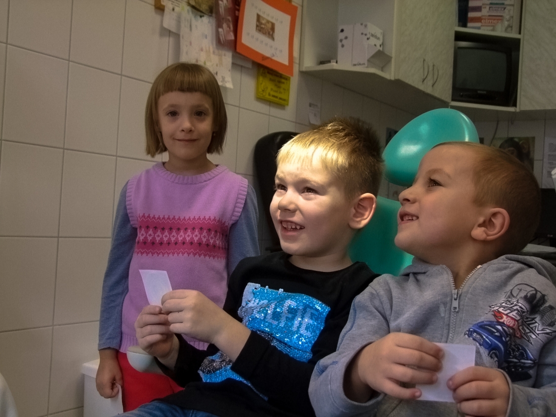A fogszakorvos ellenőrizte a kicsik fogazatát, de megnézte a mandulájukat és azt is, hogy nem vérszegények-e. Az ellenőrzés csak pillanatokat vett igénybe, és a gyerekek láthatóan élvezték a fogorvosi székben való liftezést. Az óvodások azt is megmutatták, hogyan kell helyesen fogat mosni, míg a doktor bácsinak egy-egy rajzzal hálálták meg az ellenőrzést.
