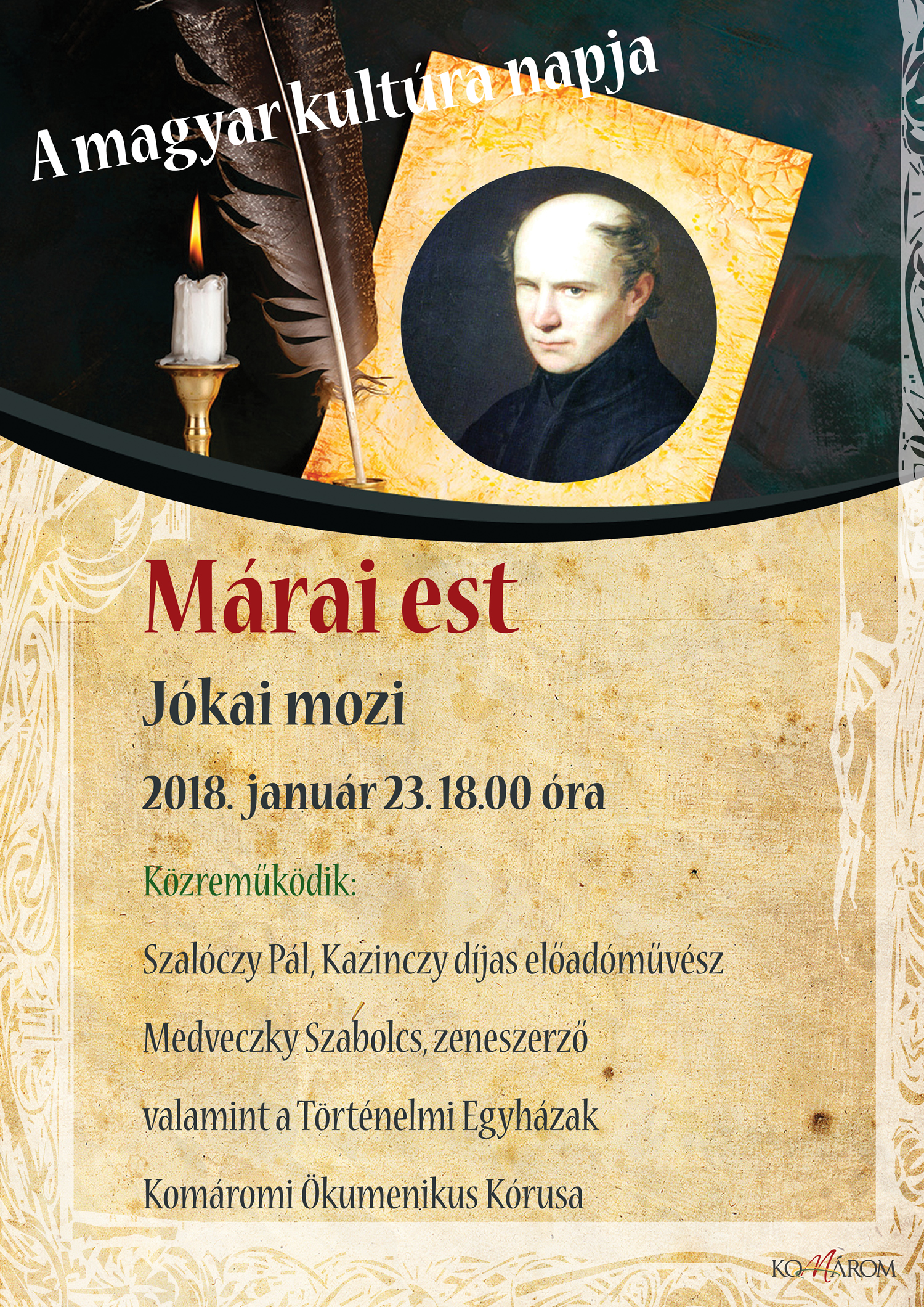 Az idei magyar kultúra napi műsoron Szalóczy Pál, Kazinczy-díjas előadóművész Márai Sándor műveiből válogat.