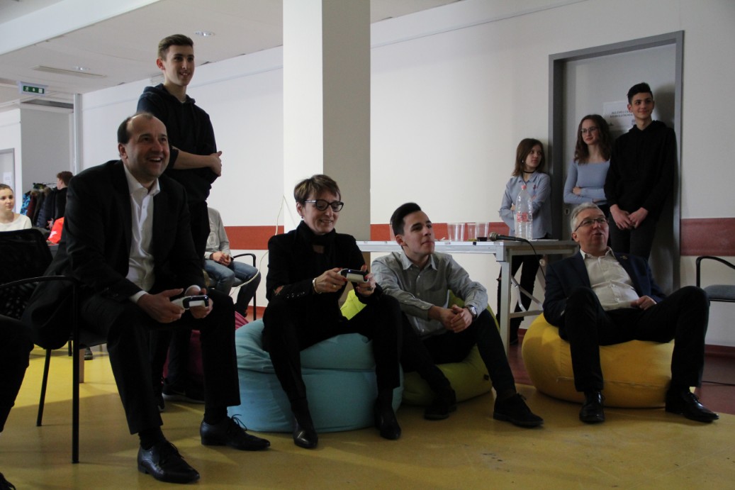 Az eseményre, a több mint félszáz fiatal mellett Czunyiné dr. Bertalan Judit térségünk országgyűlési képviselője, valamint dr. Molnár Attila polgármester és Turi Bálint alpolgármester is ellátogatott, sőt a városvezető és a képviselőasszony egy rövid meccs erejéig ki is próbálták az Xbox-ozást.