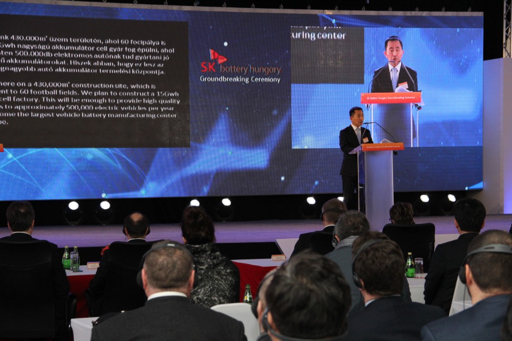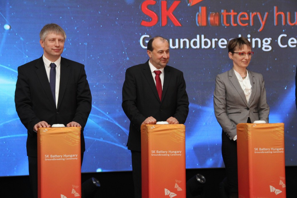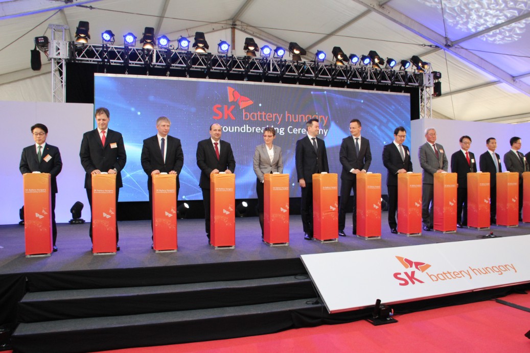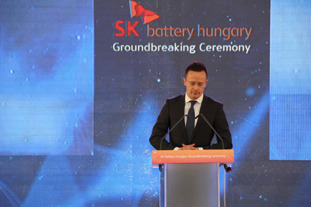 A dél-koreai SK Innovation a komáromi ipari parkban 97,5 milliárd forintos beruházással hozza létre az elektromos autókban használható akkumulátorokat gyártó üzemét – mondta a külgazdasági és külügyminiszter az építkezés ünnepélyes indításán.